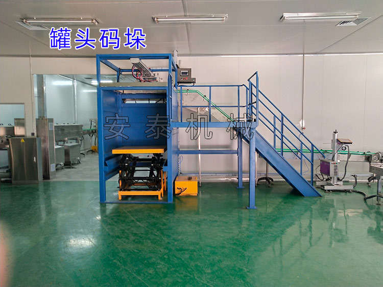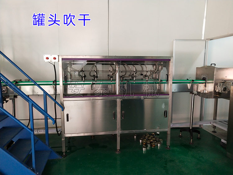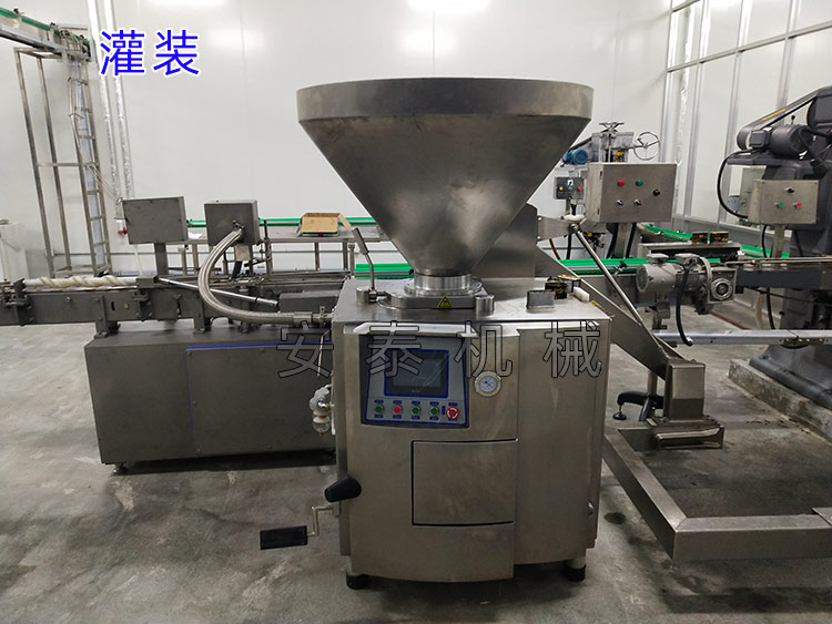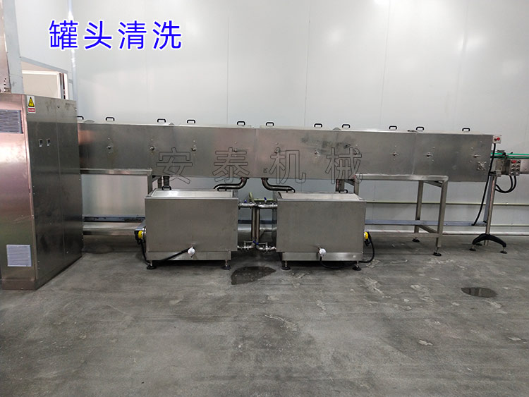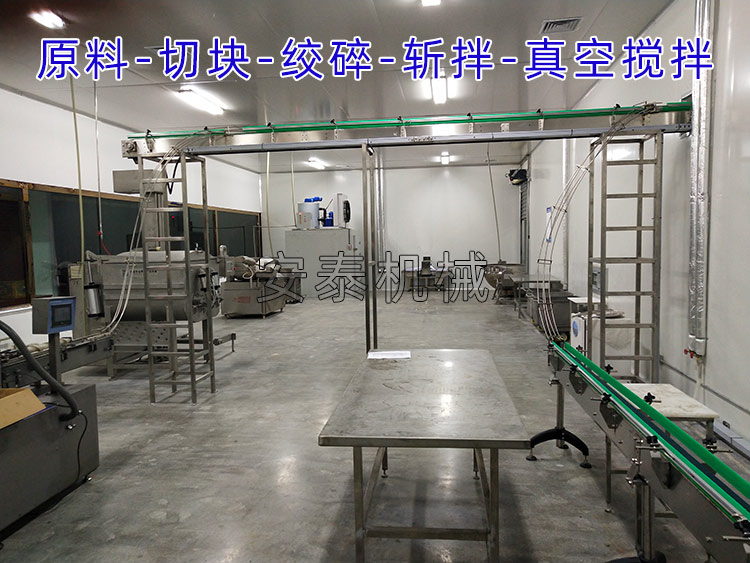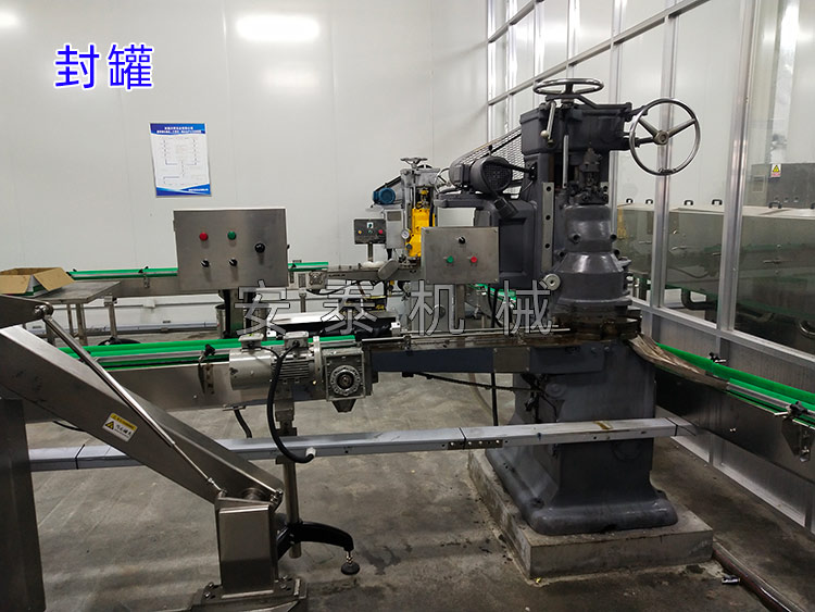 原料處理-切塊-腌制—絞碎—斬拌—真空攪拌—空罐卸垛—空罐清洗—灌裝-封罐-裝籠-殺菌—卸籠—罐頭清洗—吹干—噴碼—罐頭碼垛-罐頭卸垛—開箱—裝箱—封箱—碼垛。(可根據(jù)產(chǎn)量定制大小型生產(chǎn)線)