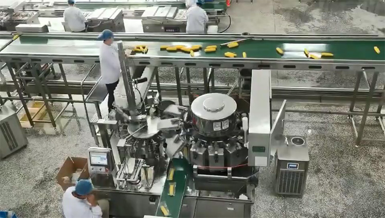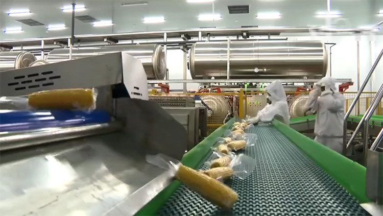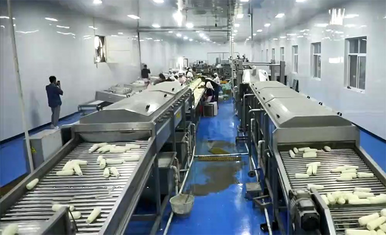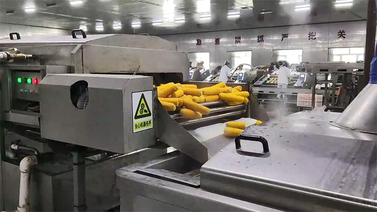 鮮食玉米加工基本流程:扒皮、切頭去尾、高壓清洗、漂湯殺青、清洗冷卻、風干、真空包裝、高溫殺菌、風干、裝箱等。